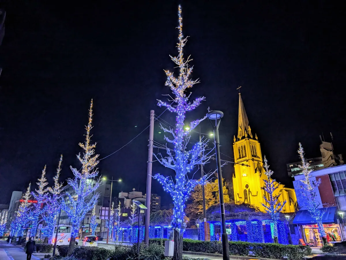 エリア別演出として、イエローやピンク、青のテーマの下、異なる雰囲気を持つイルミネーションが施されます。特に「カトリック久留米教会」の前に用意されたハートが散りばめられたフォトスポットは、ロマンチックな空間です。また、「バラタワー」の紫の光は、訪れる人々を楽しませてくれることでしょう。