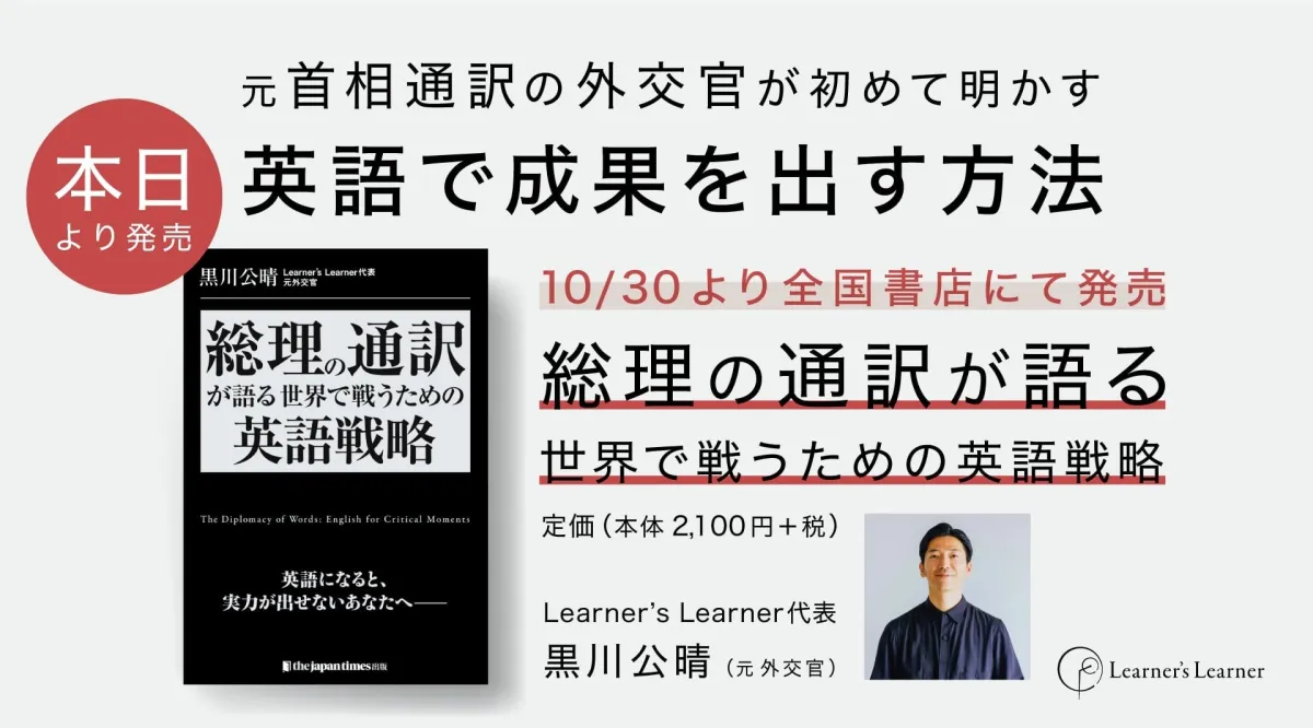 福岡県糸島市に拠点を置く株式会社ラーナーズラーナーの代表であり、元外交官の黒川公晴氏が新たに著した書籍『総理の通訳が語る――世界で戦うための英語戦略』が本日2025年10月30日に発売されました。本書は、外交の最前線で得た知識や経験を基に、日本人向けに特化した英語学習の戦略を提供します。