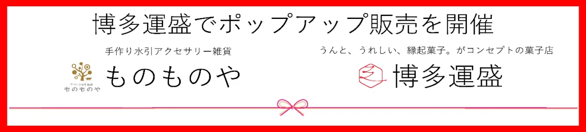 この冬、博多運盛で開催される「ものものや」のポップアップ販売は、冬にぴったりのアイテムが揃う素敵なイベントです。水引雑貨を通じて伝統文化を感じながら、特別な時間をお過ごしください。心をこめて作られた商品は、あなたを幸せな気持ちにしてくれることでしょう。