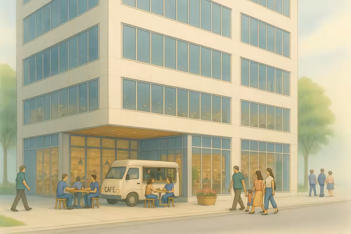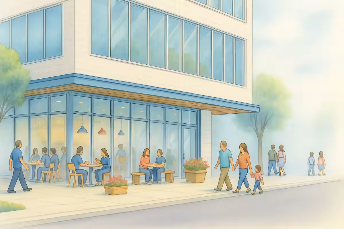 このプロジェクトの目玉は、特急停車駅となった西鉄春日原駅周辺において、魅力的な都心の環境を形成していくことです。春日市は、駅周辺に賑わいをもたらすための様々な条件を設けており、例えば、1階に商業施設などを配置し、滞留空間を設けることで、人々が集まる空間作りを進めています。