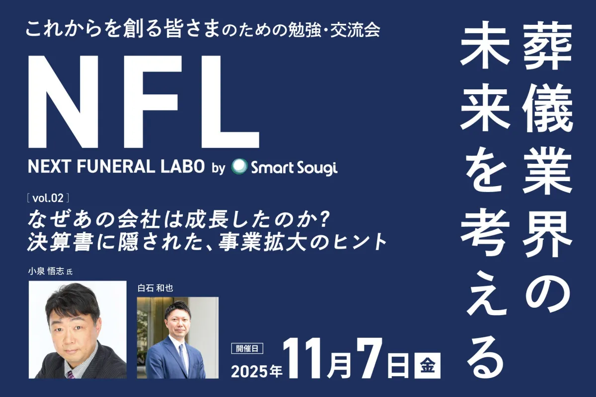 葬儀業界は今、激変の時代を迎えています。そのような中、LDT株式会社が主催する勉強・交流会『ネクストフューネラルラボ(NFL)』第2回が、2025年11月7日(金)に東京都港区のIDOLにて開催されることが決定しました。業界の将来を担う皆様にとって、有意義な学びと人脈を得る絶好の機会です。