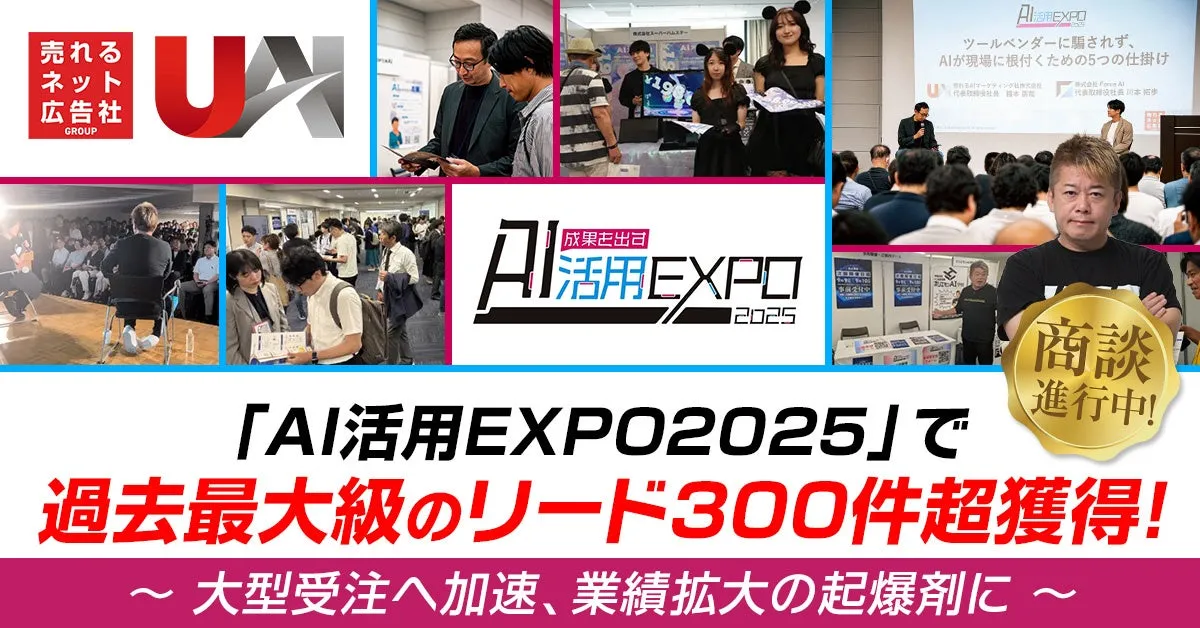 福岡を拠点に活躍する売れるネット広告社グループ株式会社が、2025年9月9日と10日の2日間にわたって開催された「AI活用EXPO2025」に出展しました。このイベントでは、驚くべきことに、300件を超えるリードを獲得するという成果を上げました。これまでの取り組みに対する市場の関心の高さや、AI技術を駆使したマーケティング戦略の効果が、明白に示された瞬間でした。