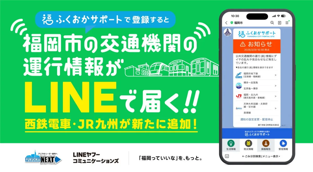 福岡市とLINEヤフーコミュニケーションズが連携し、福岡市LINE公式アカウントを通じて公共交通機関の運行情報が受け取れる新サービスが開始されます。この取り組みは、2026年4月1日より西鉄電車とJR九州の情報が追加される予定で、市民の利便性を一層向上させるものです。