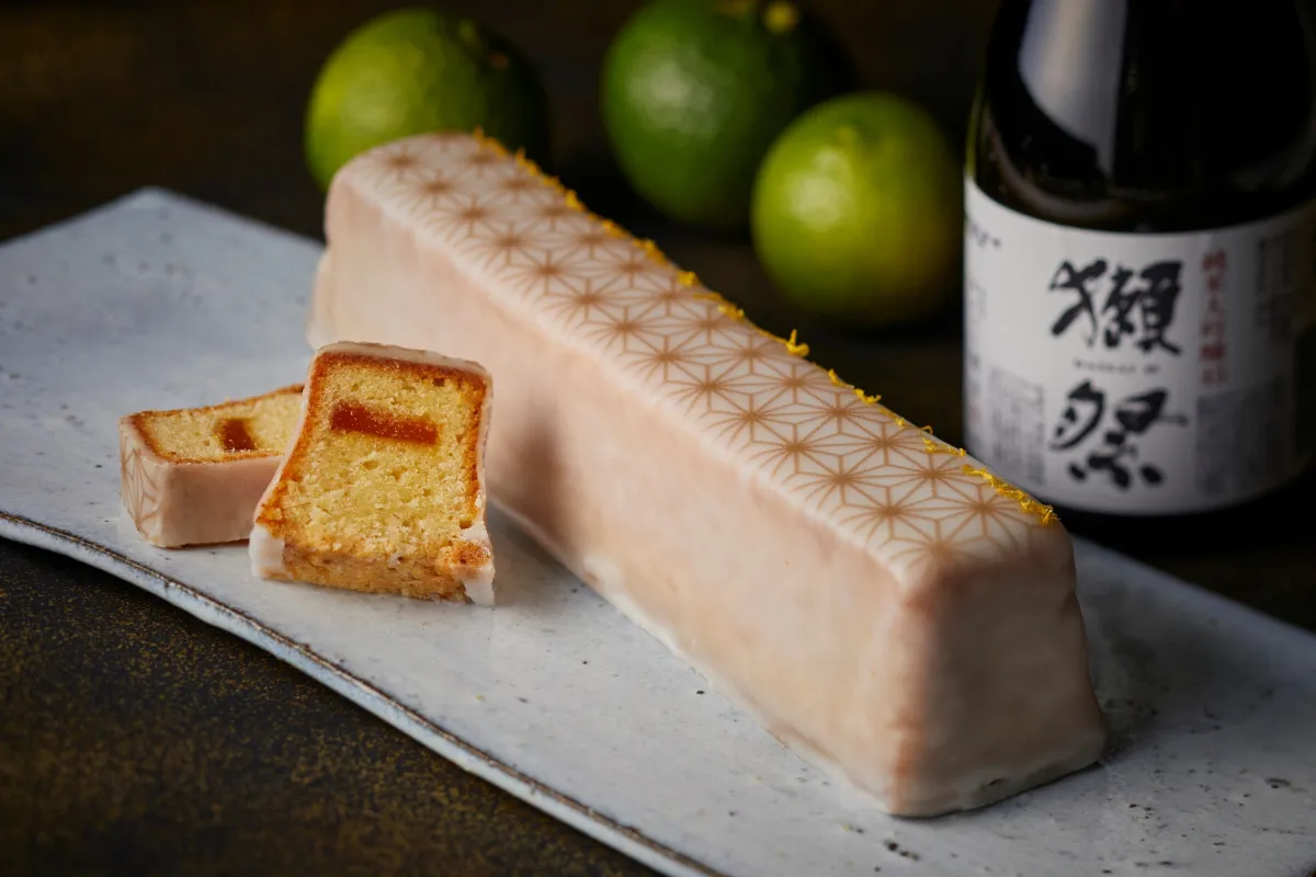 このケークは、香り高い獺祭の華やかな香りを引き立てつつ、アルコール感を抑えたしっとりとした味わいを実現しています。生地には、ゆずきちのエキスと、高知県産の黄ゆずを使ったコンフィチュールを取り入れています。さらに、土台には獺祭の酒粕を混ぜたシュトロイゼルを使用し、サクサクとほろりとした食感がアクセントになっています。