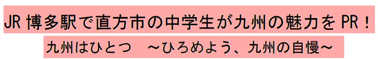 直方市立植木中学校の2年生が、九州の素晴らしさをJR博多駅前で広めるイベント「九州はひとつ~ひろめよう、九州の自慢~」を開催します。このイベントは、JR九州リテール株式会社が福岡県とカルビー株式会社との協力により実現しました。九州全体の魅力を“ひとつ”として伝えることを目的としています。