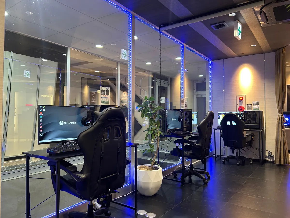 MDL.make福岡天神店は、全8台のゲーミングPCを完備しており、すべてのPCに高性能のゲーミング機材が揃っています。そのため、ストレスフリーで快適なプレイ環境が整っています。ご利用は簡単で、店舗の受付カウンターで支払い後にご利用可能。その際、初めて訪れる方は会員登録が必要ですが、登録自体は非常にスムーズです。