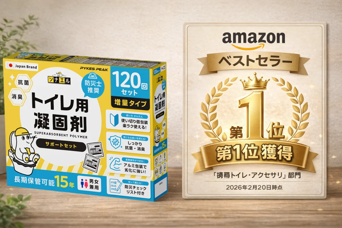 このような状況に対応するべく、PYKES PEAKが提供する「簡易トイレ 凝固剤120回分」は、Amazonの「携帯トイレ・アクセサリ」カテゴリでベストセラー1位を獲得しました。119のレビューが寄せられ、すべて評価が★4以上という高評価を維持しています。これには「家族の備蓄として安心」「断水対策に購入」「コストパフォーマンスが優れている」といった嬉しい声が詰まっています。
