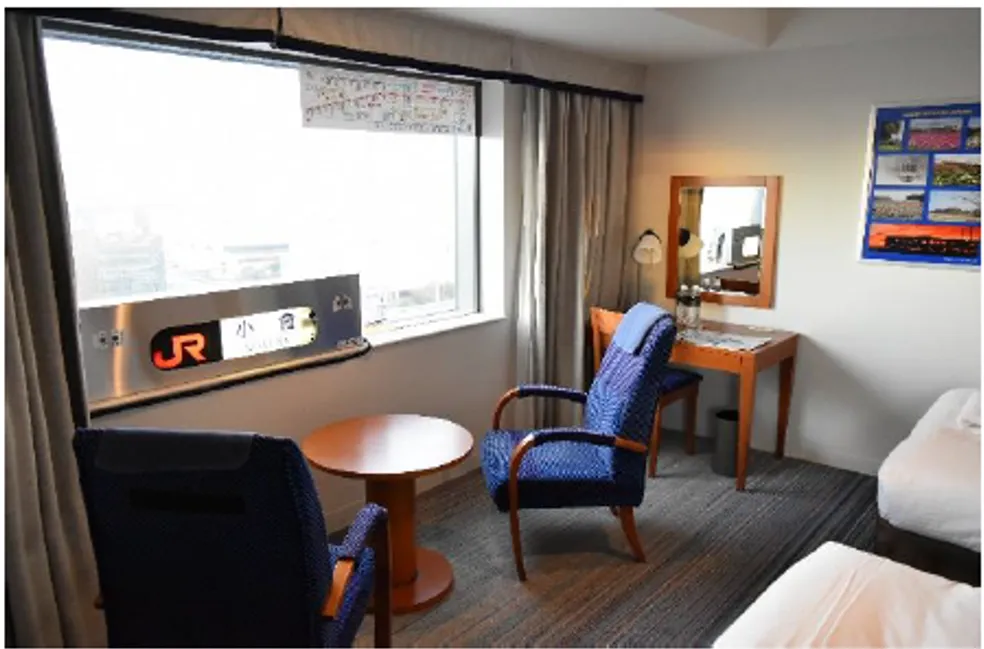 新たに改良されたコンセプトルームは、JR九州811系電車のデザインを活かし、内装に鉄道らしさを演出しています。宿泊中は、窓から見える走行する列車や北九州の雄大な景色を楽しむことができ、まるで自分が列車に乗って旅をしているかのような体験を提供してくれます。