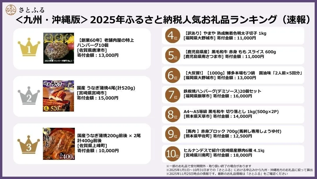 2025年九州・沖縄のふるさと納税お礼品ランキング速報発表!