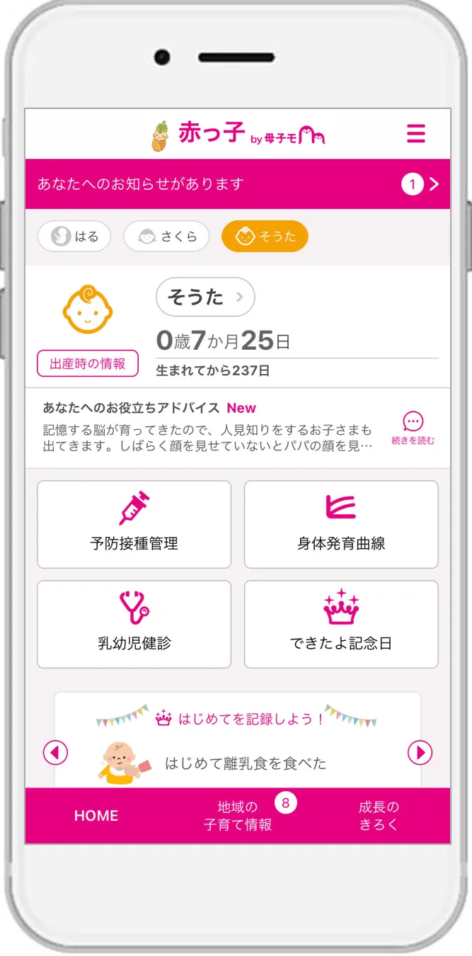 『赤っ子』は、妊娠から出産、育児に関する情報を一元管理できる便利なツールです。例えば、妊娠中の体調や体重の記録をグラフ化することができ、胎児や子どもの成長のトラッキングも簡単に行えます。また、予防接種の日程を管理する機能や、健診の履歴を保存する機能も充実しています。さらに、地域のさまざまなサービス情報を提供し、家族間でのデータ共有もできるため、離れた場所にいる祖父母といった家族ともスムーズに情報をやり取りできます。