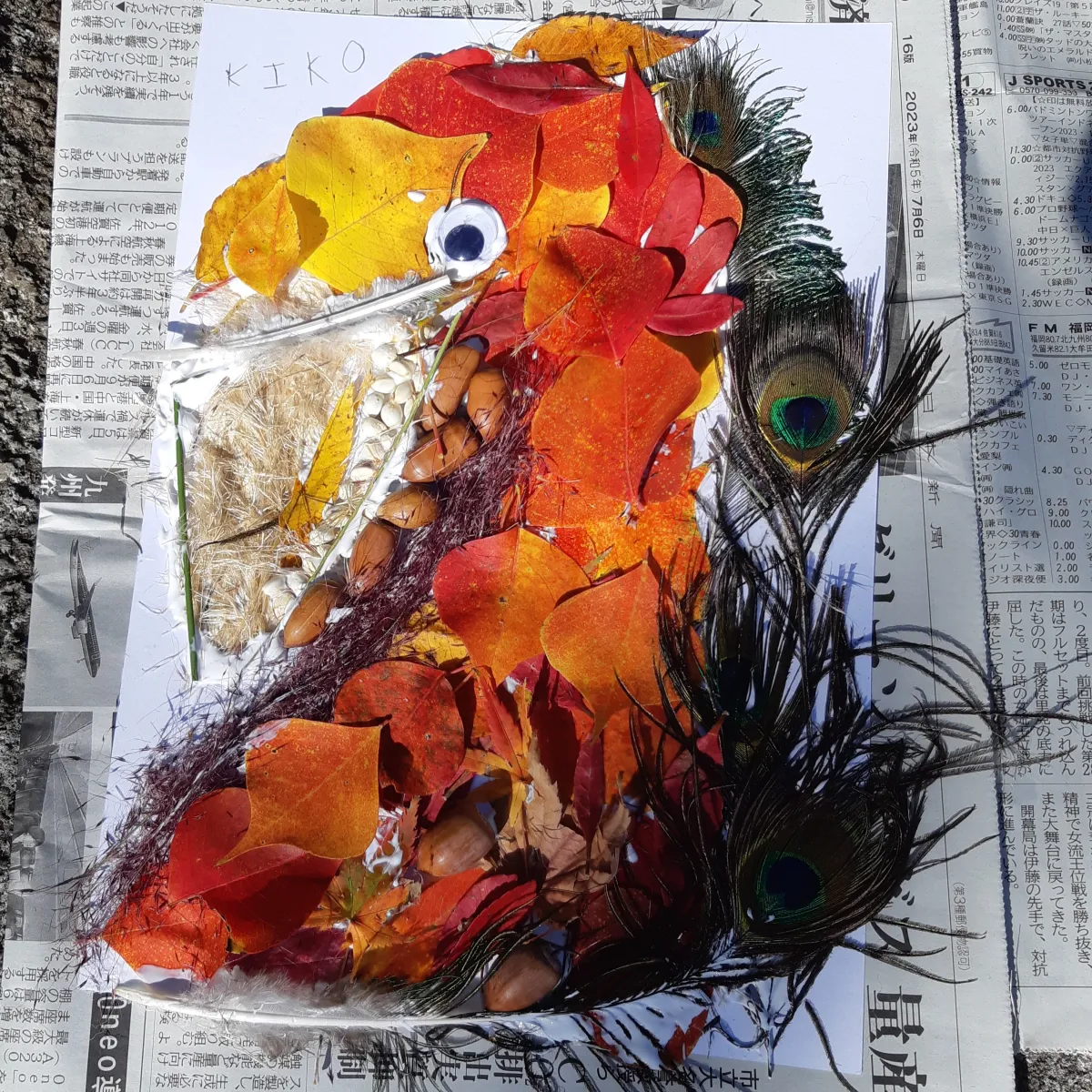 このワークショップでは、落ち葉やクジャクの羽を使用して、参加者自身が選んだ素材から動物を創り出します。唯一無二の作品を作ることで、子どもたちの誇りも育まれ、完成したときの喜びも一入です。