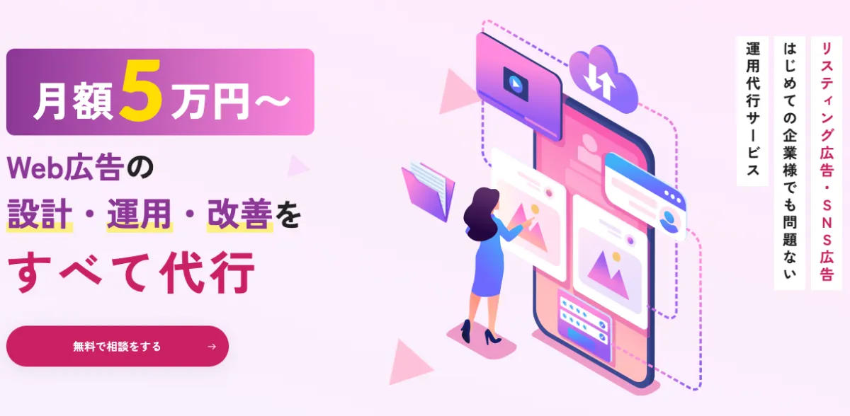 単なる広告運用を超え、マーケティング戦略の設計からクリエイティブの制作、配信、改善までをワンストップで提供します。これにより、社内に専任の担当者がいなくても、プロフェッショナルに全てを任せることが可能です。