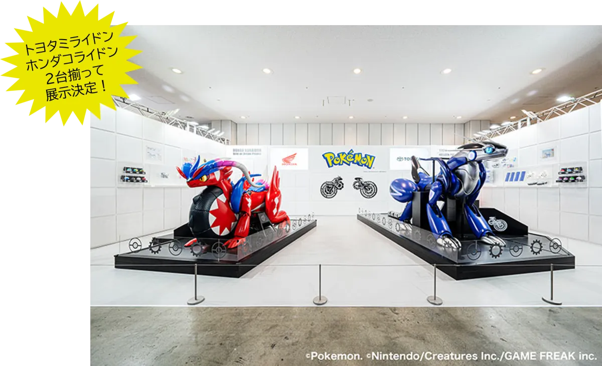 「トヨタミライドン」は、子供たちの夢を実現するためにデザインされており、四足歩行が可能。バイクのように走ることもできるユニークな機能を備えています。また、「ホンダコライドン」は、ポケモンの旅で遭遇できるキャラクターを忠実に再現したもので、実物大にこだわった作りとなっています。どちらも会場では自由に見学でき、ライド体験も待っていますので、是非とも体感してみてください。