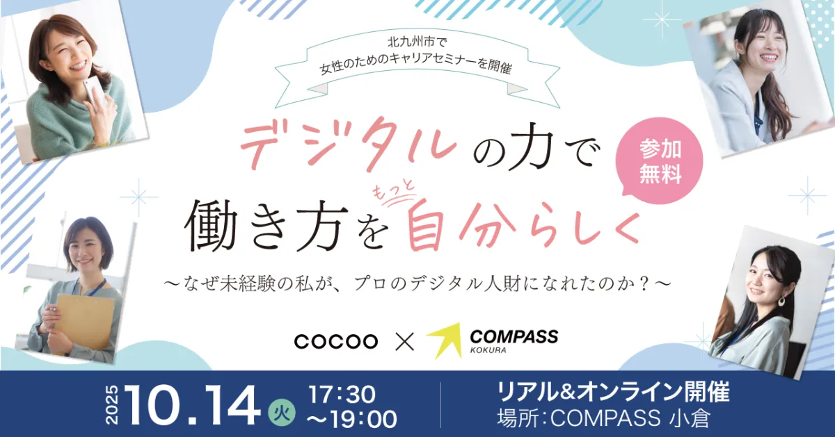 コクー株式会社は、2025年10月14日、北九州市で女性向けのキャリアセミナーを開催します。このセミナーは、未経験からデジタル人財として活躍するための具体的なステップを学ぶための貴重な機会です。デジタルスキルを身につけたいと考えている女性にとって、キャリアの選択肢を広げるきっかけとなることでしょう。