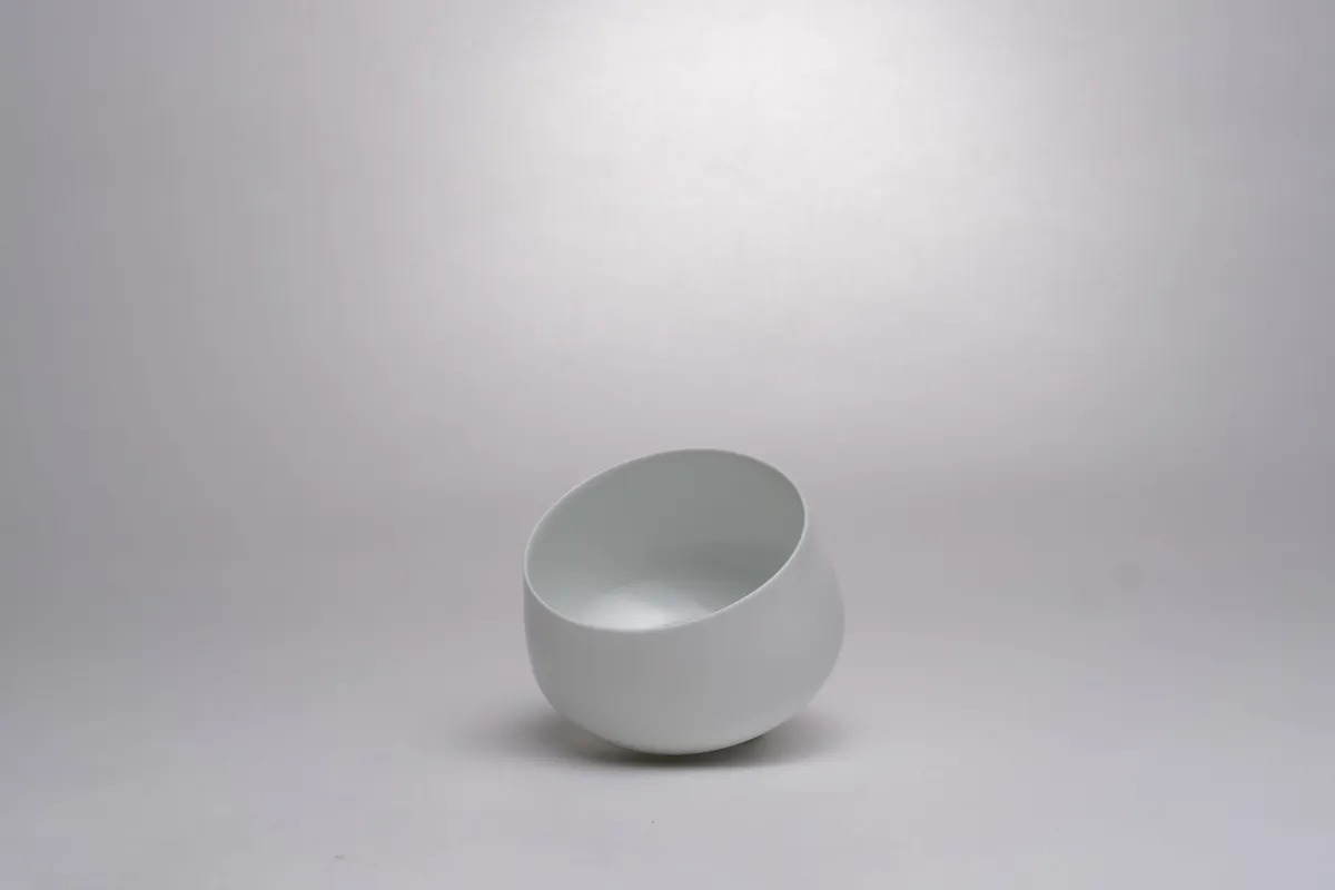 SHUWANの酒器は、そのユニークな設計で知られています。口縁部から胴体の最も張り出した部分にかけて徐々に広がり、そこから高台に向かっては緩やかに絞り込まれています。真上から見ると、口縁部はほぼ円形で、胴体の張り出し部分は楕円形を描くという二重構造です。この特異なデザインは、酒器の内部で香気成分がより効果的に対流し、香りが豊かに広がることを可能にします。